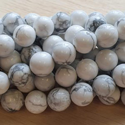 Foto 1 is een streng met Howliet edelstenen 8 mm waarvan de armband is gemaakt.