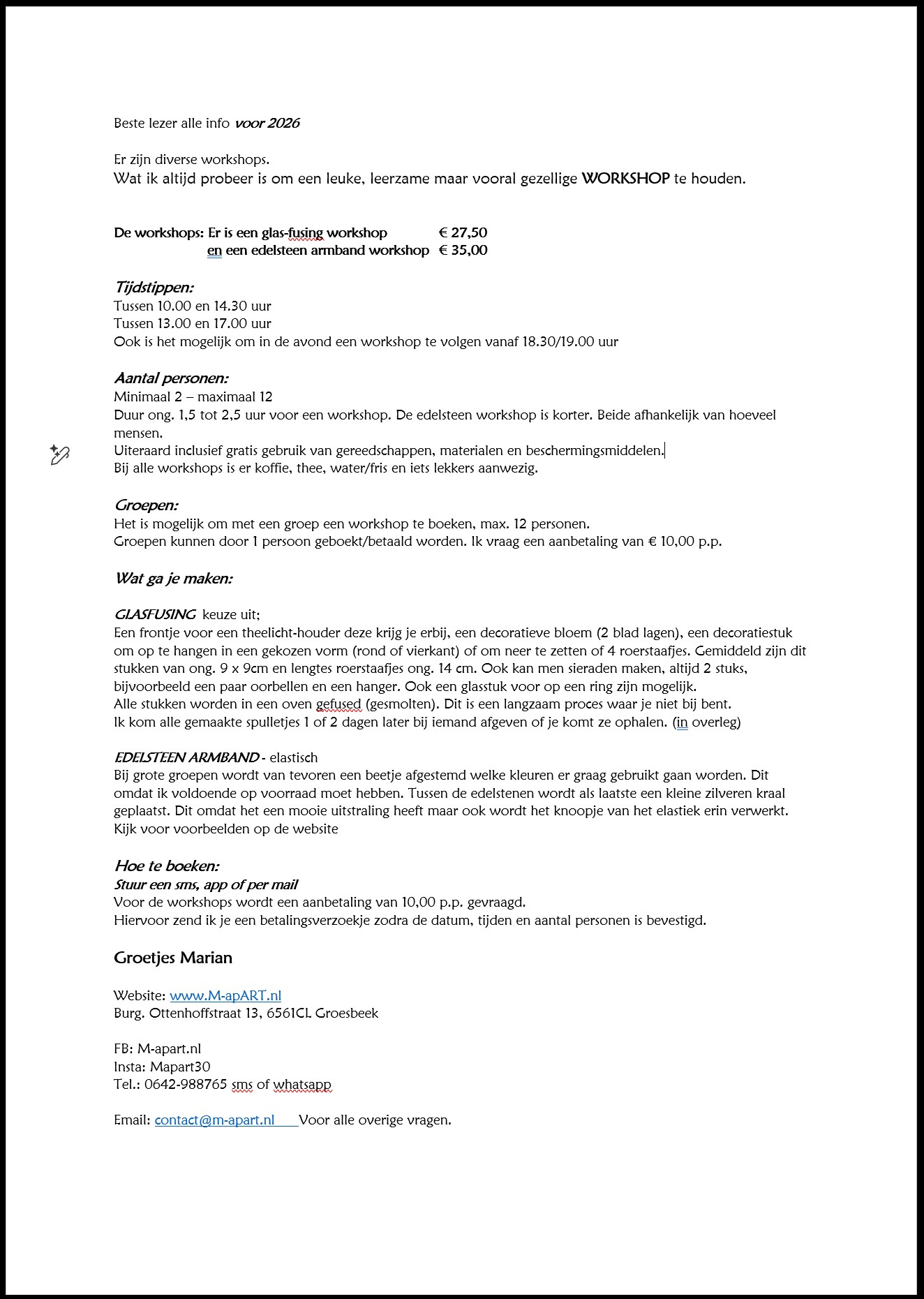 Workshop informatie